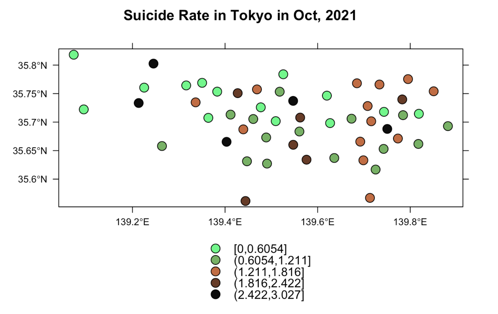 2021-1 Spatiotemporal Data Visualization - Project 6: Suicide Rate STFDF object in Tokyo, Japan