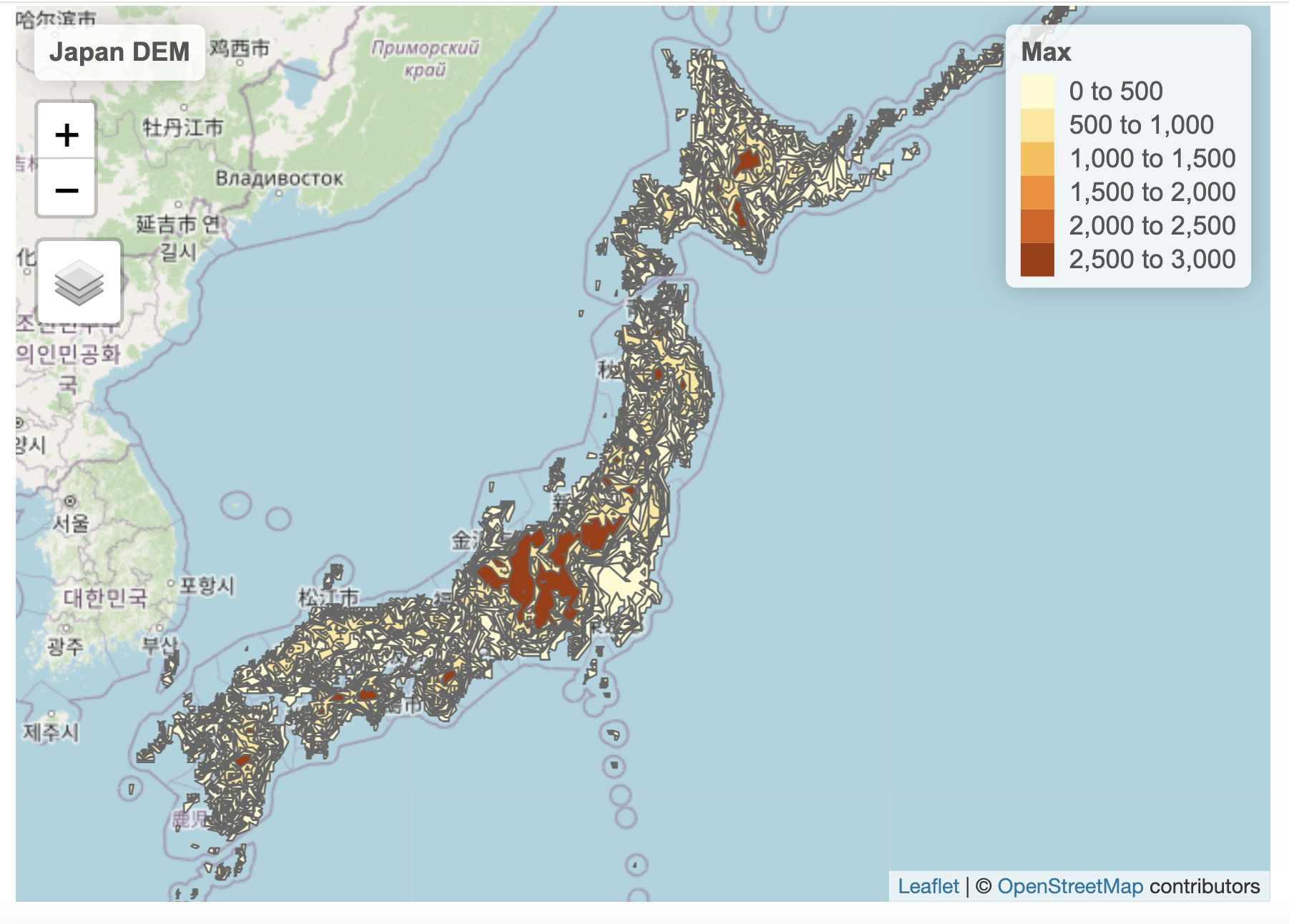 2021-1 Trajectory, Raster and Vector Project 2: Topography from DEM and Population Density Map in Japan